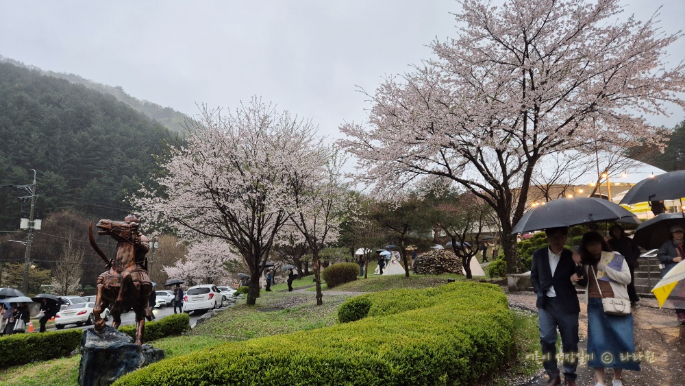 비가 꽤 거세게 쏟아졌지만, 몽골문화촌까지 이어지는 벚꽃길은 아주 예뻤다. 조금 더 추운 지역답게 이 곳에는 아직 벚꽃이 한창이었다. 꽤 긴 거리가 아름드리 벚꽃길이라, 내년에는 꽃구경하러 몽골문화촌에 와야겠다.