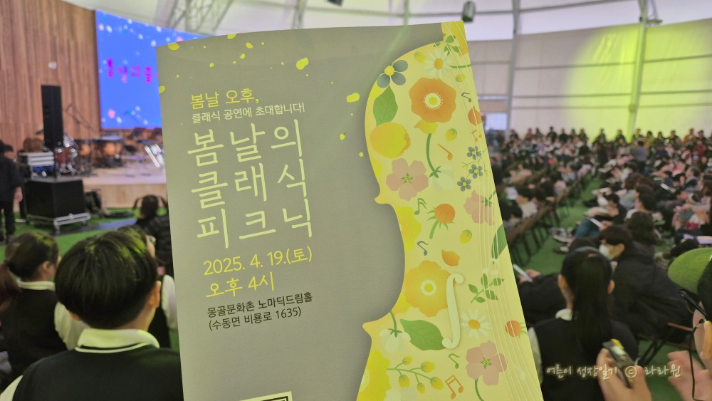 문화센터에 갔다가 집 근처 몽골문화촌에서 클래식 공연을 한다는 포스터를 보았다. 바로 찍어 두고, 캘린더에 저장해두었다. 당일이 되니 봄날같지 않은 폭우가 쏟아졌다. 하지만 음악회 보러 한 두 시간 걸려서도 가는데, 집 근처 10분 거리 음악회를 놓칠 수는 없다. 집 근처에서 음악회라니! 상상도 못한 일이다.